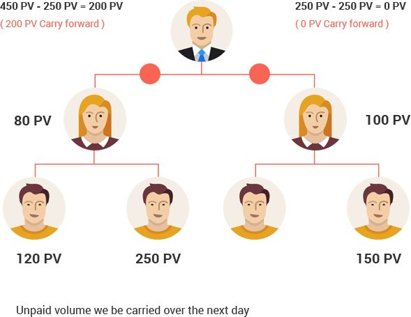 Binary MLM software follows the Binary plan which basically allows growth in matrix of two. Binary plan is a technique of pairs. Generally it follows the left and right tree structure. Members in the tree structure progresses up the chain by incorporating two members under him directly. The member can introduce maximum of only two members under him. One on the right side and other on the left side of tree structure.